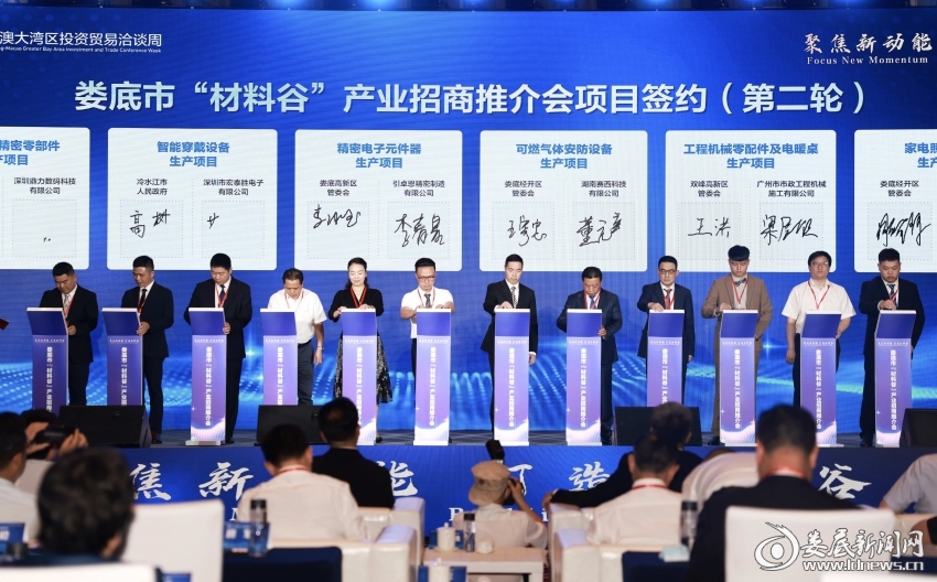婁底新聞網(wǎng)訊(婁底日?qǐng)?bào)全媒體記者 羅宗 劉婷)5月28日,借助2023年湖南-粵港澳大灣區(qū)投資貿(mào)易洽談周契機(jī),婁底市在深圳舉行“材料谷”產(chǎn)業(yè)招商推介會(huì),現(xiàn)場(chǎng)簽約項(xiàng)目24個(gè),總投資135.2億元。婁底市委副書(shū)記、市長(zhǎng)曾超群致辭。