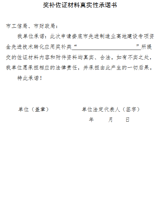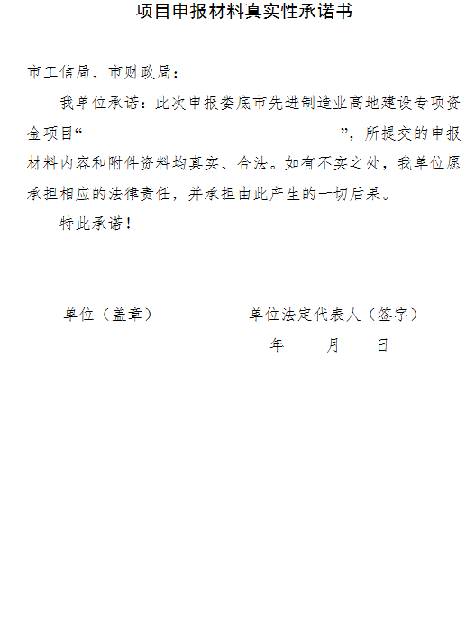 (三)其他要求。各縣市區(qū)須嚴格按照《婁底市先進制造業(yè)高地建設專項資金管理辦法》(婁財企〔2023〕147號)文件要求認真組織項目申報工作,項目申報材料必須真實齊全。嚴禁違規(guī)推薦,弄虛作假,一旦查實有資料作假行為,不予受理其上報文件,并將影響到對轄區(qū)項目的支持,同時追究申報企業(yè)、審批人員的責任。