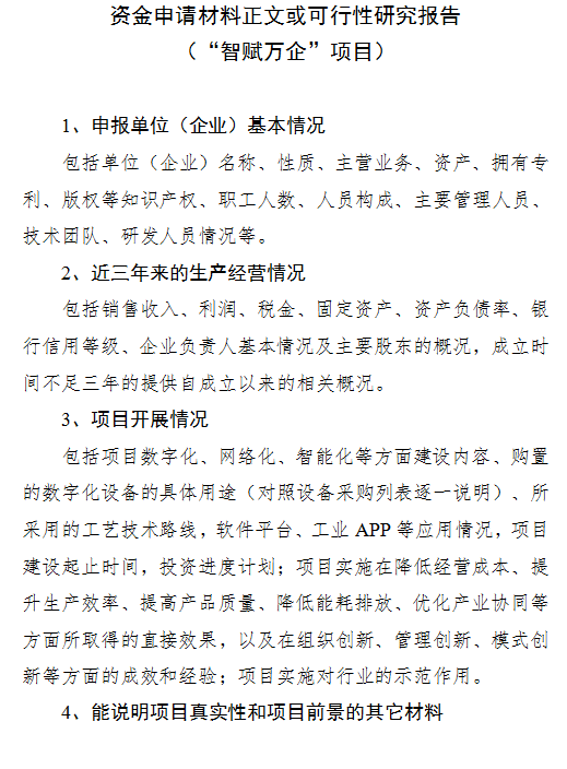 (2)“智賦萬企”項目。主要支持企業(yè)數字化轉型、智能制造、工業(yè)互聯(lián)網項目;