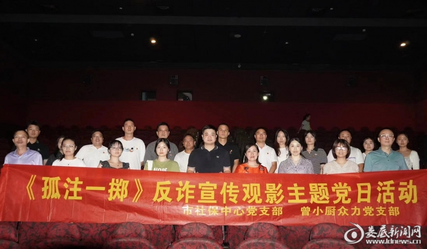 婁底新聞網(wǎng)訊(通訊員 吳寧)為增強黨員反詐騙意識,切實加強防范電信網(wǎng)絡(luò)詐騙宣傳教育,凸顯黨建示范引領(lǐng)作用,筑牢反詐防線,9月1日晚,婁底市“五聯(lián)共建”結(jié)對黨支部——市社保中心黨支部和曾小廚眾力黨支部聯(lián)合舉辦主題黨日觀影活動,觀看反詐主題電影《孤注一擲》。
